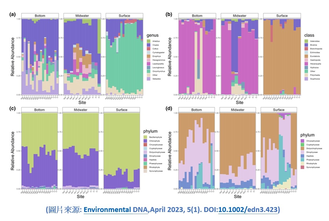 1.針對特定基因區域進行DNA定序。定序所獲得的數據先依照原本PCR放大的片段大小進行處理,如果片段較大的話需要先進行Merge的步驟;如果片段較小的話可以直接使用單邊的序列進行後續分析。而依照不同的分析方法Operational taxonomic unit (OTU)或是Amplicon sequence variants (ASV),將相似的序列進行整合以獲得環境DNA的maker gene序列。